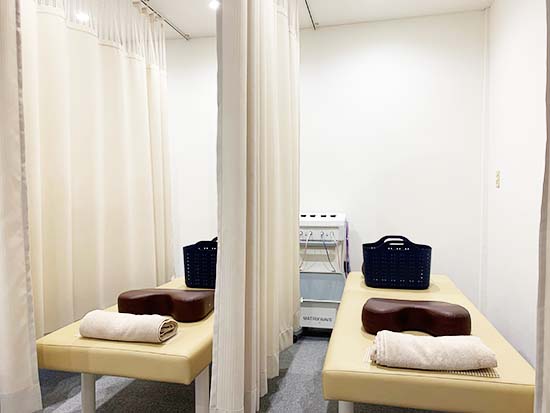 落ち着いた雰囲気の院内です。カーテンで区切っているので、リラックスして施術を受けて頂けます。